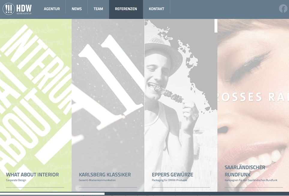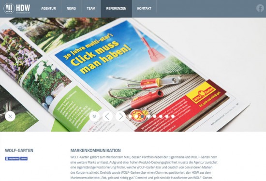 Wie so oft ist es für eine Werbeagentur die größte Herausforderung, eigene Kommunikationsmittel zu entwerfen. Nach erfolgreicher Erneuerung des Corporate Designs beauftragte uns unsere Schwester, die HDW Werbeagentur, mit dem Relaunch der Website. Die etwas in die Jahre gekommene Flash-Seite sollte durch eine neue mobil-fähige Version ersetzt werden.
